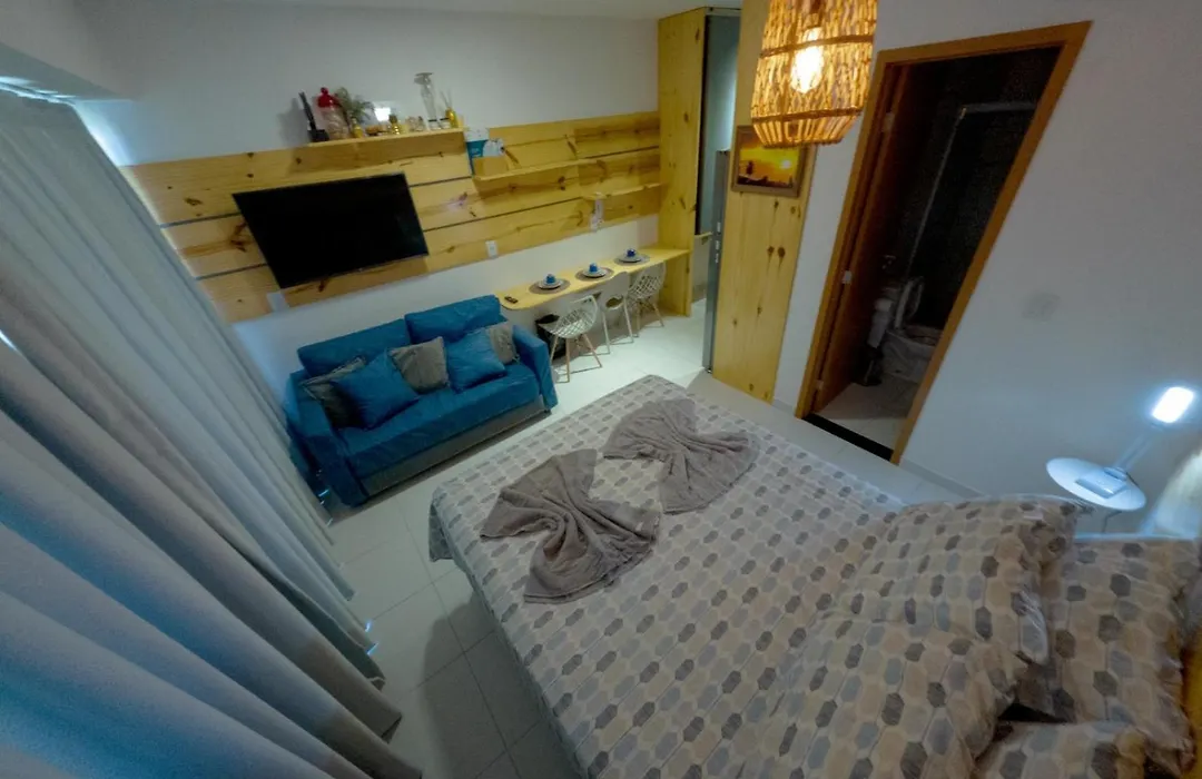 Porto De Galinhas- Flat Terreo Top Frente Piscinas- Muro Alto dairesi, Estrada Acesso para Praia de Muro Alto e Camboa'a 7 dakikalık yürüme mesafesinde yer almakta olup yüzme havuzu içeren terasa sahiptir. 1 banyolu ve 1 yatak odalı dairede donanımlı bir mutfak bulunmaktadır.